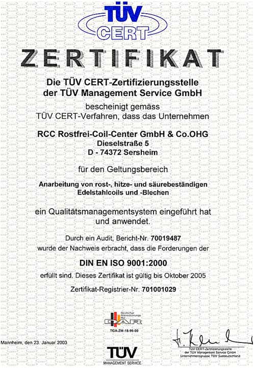 mittlerweile auch schwarz auf weiß. Das Service-Center RCC (Rostfrei-Coil-Center) GmbH & Co. OHG,